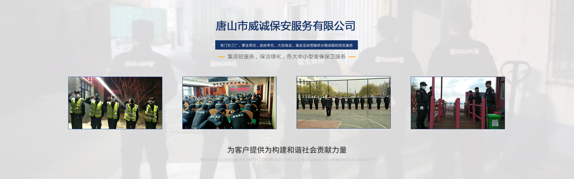唐山市威誠保安服務有限公司自成立以來以“嚴防死守、忠于業(yè)主”為服務原則,以“客戶滿意、 合作共贏”為根本目標。以科學的管理、多方位多層次的服務,建立了首問責任制,完善了走訪、回訪 、滿意度調查、末位淘汰的預警管理,不斷提高服務質量,提高業(yè)主滿意度,提高企業(yè)形象。秉承“誠 實守信,紀律嚴明,團結協(xié)作,致精致誠”的服務理念,為客戶提供高品質、多方位、專業(yè)化的保安服務。 本公司制定了嚴謹?shù)亩ㄏ蛘猩徢芭嘤枴⒖己虽浻谩徶信嘤?、持續(xù)培訓、末位淘汰制等一整套完善的管理體系??梢愿鶕?jù)客戶的要求實地勘察評估,以量身定做的方式提供安保防范服務。